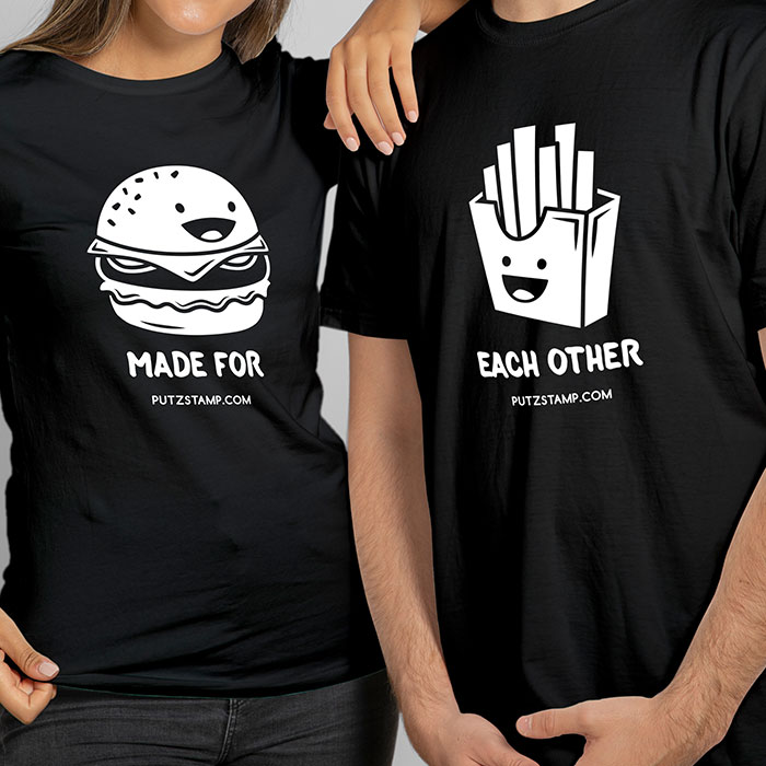 Expressa o teu amor pela tua cara metade e surpreende-a de forma original e engraçada com a t-shirt “MADE FOR EACH OTHER”.